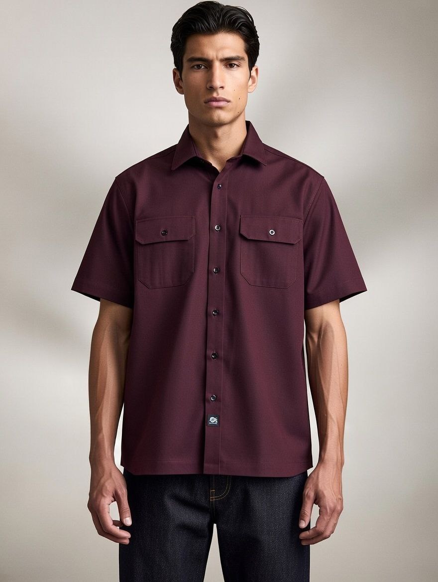 Рубашка OuterSpace Cigar82 Short-sleeve - классическая рубашка c коротким рукавом в пурпурном цвете, изготовлена из плотной хлопчатобумажной ткани. Благодаря гидрохромной технологии окраски ткани, после стирки материал слегка изменит цвет, создавая "ретро эффект".